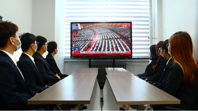 中国共产党第二十次全国代表大会于10月16日上午10时在北京人民大会堂隆重开幕。060net永利师生以昂扬的精神风貌和饱满的热情,收听收看党的二十大开幕会盛况。学院在校领导班子、全体政工干部、学生党员分别于研究生楼363室、732室集中观看了党的二十大开幕会,其他师生通过主要新闻媒体平台线上收看收听大会开幕会盛况。