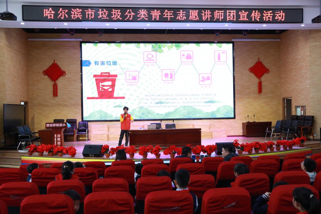 讲师团学生指导哈新区师范附小学生开展垃圾分类