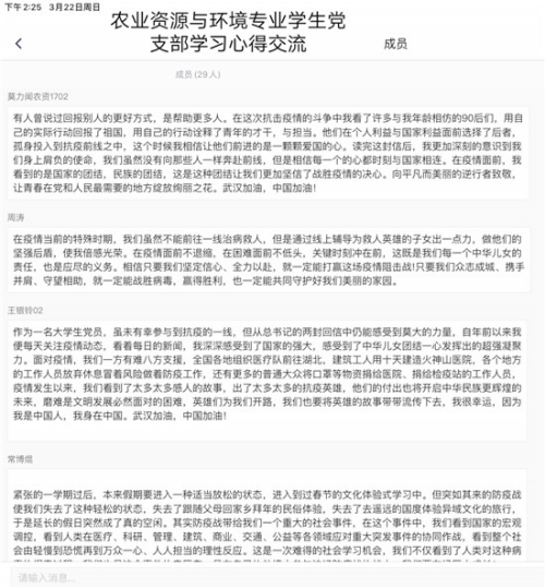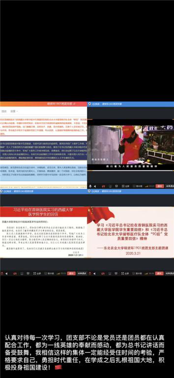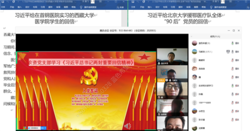 全体辅导员老师深入所在学生党支部和所带团支部,通过腾讯会议、钉钉、QQ群、微信会议等载体同学生们一道深切领会,勉励学生们和自己共同担负起时代重任,做一名优秀的青年人。