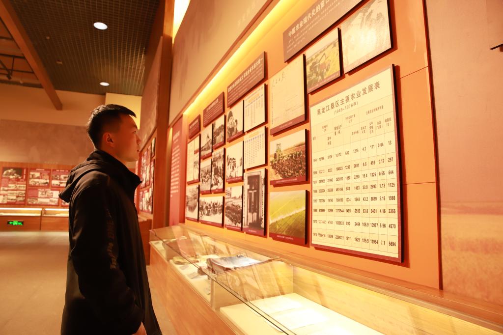 两个学院的同学们一同走进北大荒博物馆,追随先辈足迹,重温北大荒精神,感受北大荒厚重的历史文化和北大荒精神内涵。在讲解员的生动解说下,先后参观了“垦前史略”、“精神之源-铸剑为犁”、“时代楷模-精神永恒”、“精神之路-航母启航”、“精神之光-文化沃土”和“精神之力-改革前行”六个展厅与1000余件珍贵文物,了解了北大荒76年的开发建设历程、几代北大荒人艰苦创业的历史画卷,感受到北大荒作为共和国大粮仓在“率先实现农业现代化”的伟大征程中的磅礴气势,惊叹于北大荒人在共和国垦殖史上的英雄壮举。