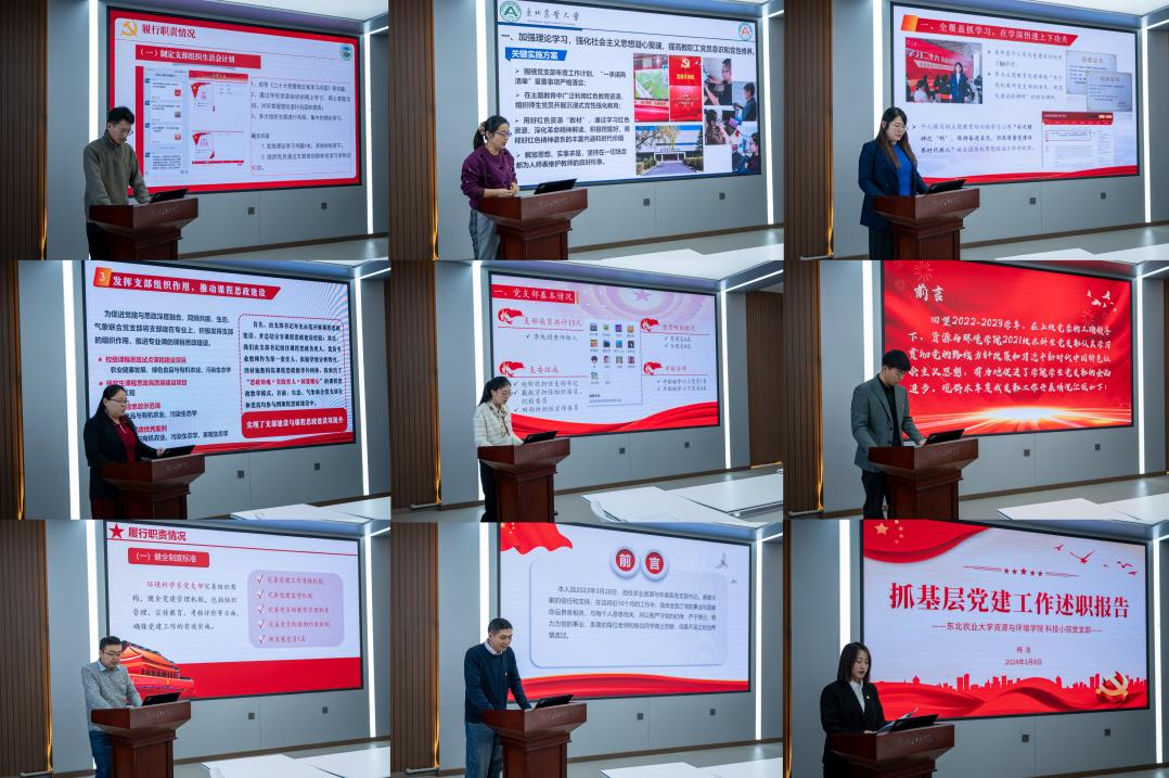 会上,按照现场述职比例要求,教工党支部书记及学生党支部书记依次进行现场述职汇报,各党支部书记围绕抓党建促发展主题,结合党支部实际,从履行职责、存在问题和下一步工作举措等三个方面,对所在党支部全年开展工作情况进行详实汇报,部分学生党支部书记采取书面汇报形式进行。
