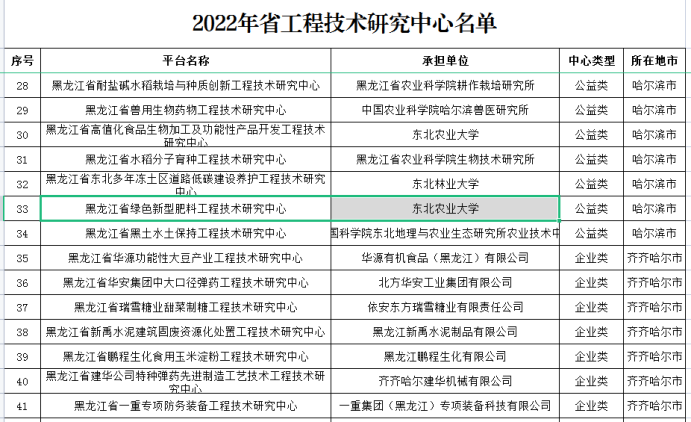 11月8日,黑龙江省科技厅公示了2022年备案省级工程技术研究中心,我院在省级科技创新平台建设方面取得的新突破,由姜佰文教授牵头的“黑龙江省绿色新型肥料工程技术研究中心”名列其中。该中心是我院第一个院企共建研究中心获批省级的工程技术研究中心,也是目前我校在肥料行业中获得的唯一的省级研发平台。