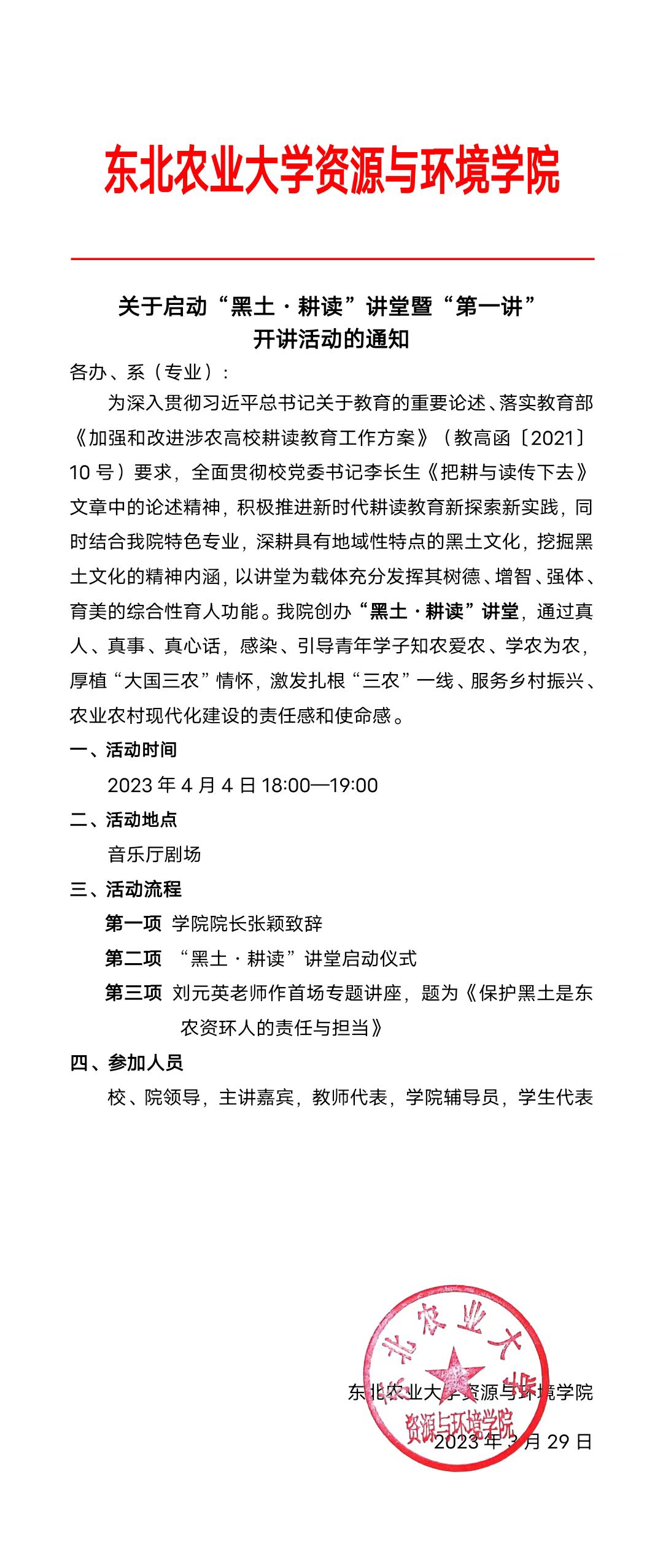 关于启动“黑土·耕读”讲堂暨“第一讲”开讲活动的通知