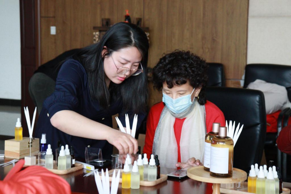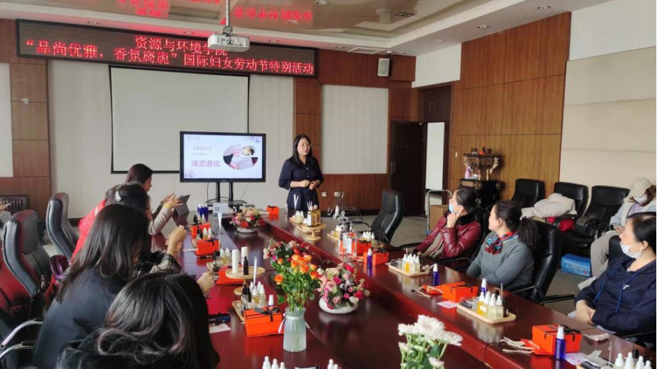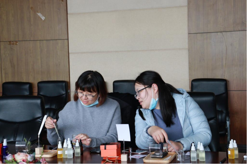 本次活动邀请到了国际芳疗师向学院女教工讲解了调香技巧与护肤知识,从认识香料、闻香调频、精油介绍、调香常识几方面进行全面细致的讲解,结合案例分享与亲身体验,并指导大家动手调香,根据不同的性格、气质、喜好,为每一位女教工调制了一款专属香水。参加活动女教职工积极参与,会场生动有趣、气氛活跃。