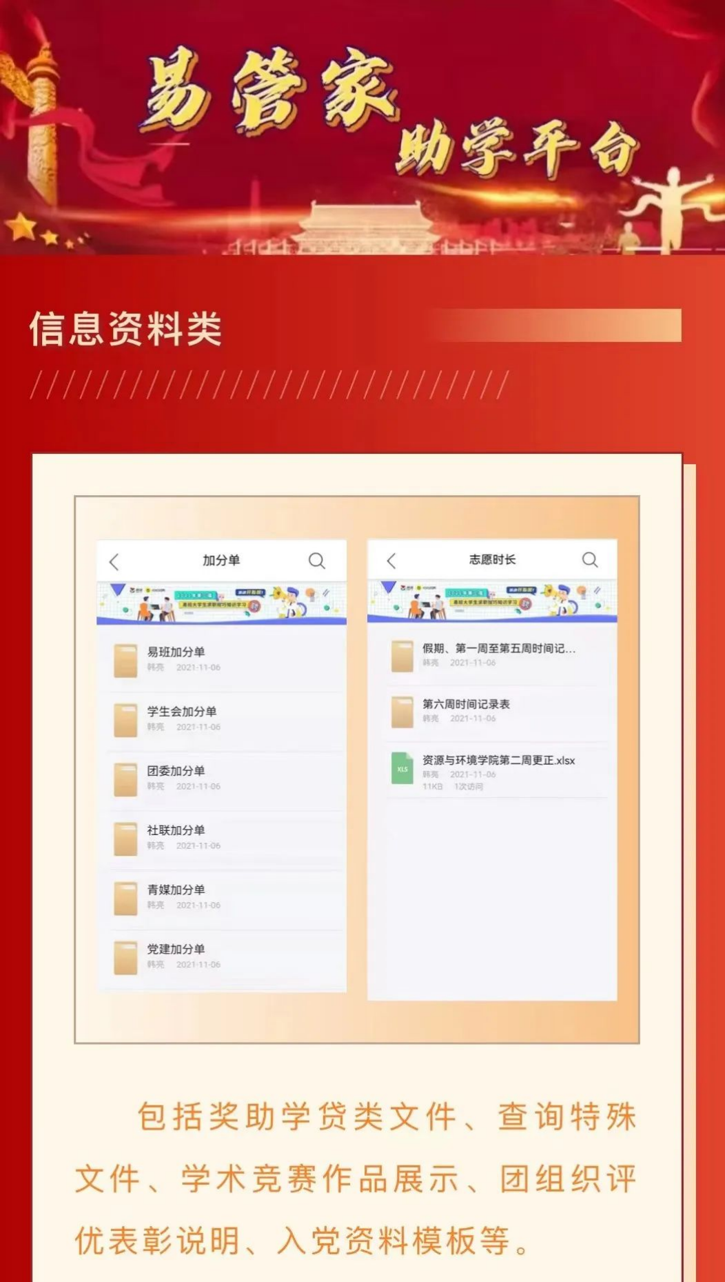 中心依托线上、线下(click-and-mortar)两个途径构建集教育、管理、服务为一体的“一站式”平台。线上依托“易班平台”构建“资环易管家”,涵盖学生教育教学、管理服务、“五育”活动三个模块,可实现综评、奖助、竞赛、优课、招聘等27项功能;线下学院聘请学生助管,负责中心运行和事务性服务职能。夯实完善奖、助、贷、勤工作体系,真正落实“以生为本”理念,将服务与育人相结合,协调与监督相结合,提高服务质量与完善和优化中心工作体制和运行机制相结合,将中心建设成为教育的阵地、咨询的窗口、办事的平台,全力打造“学生之家”。