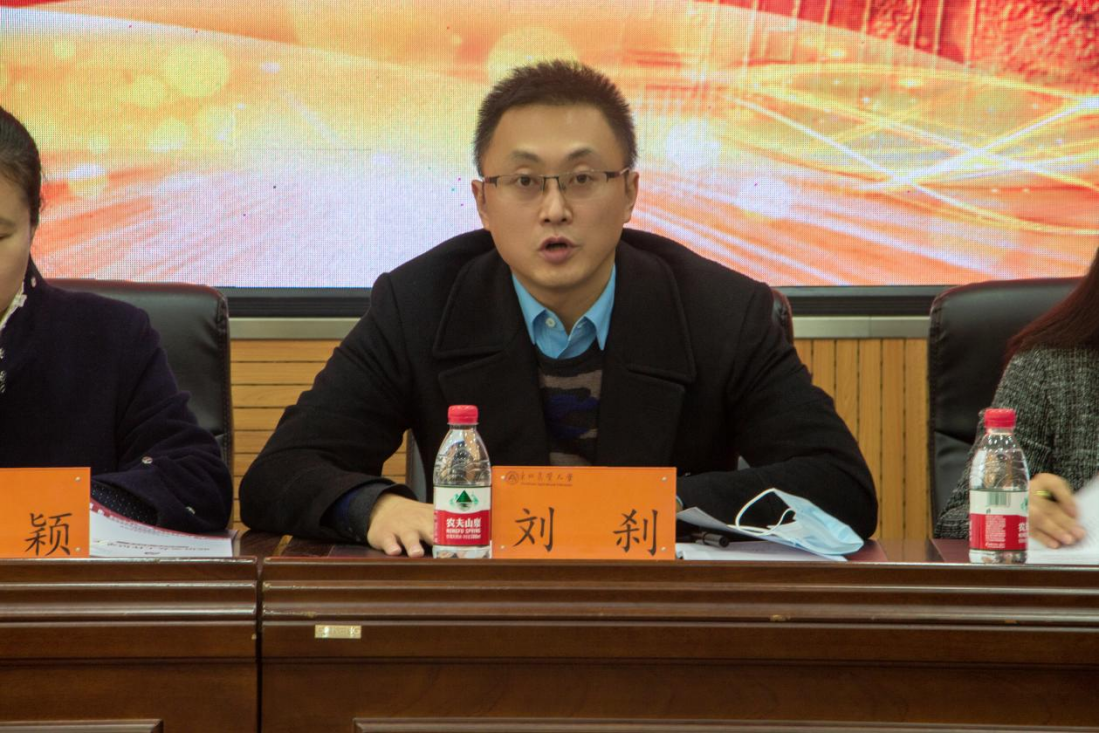 最后,学院党委书记刘刹进行表态发言并布置了下一阶段的工作任务。他表示,作为学院党委书记要做到:一是讲政治强党建。坚定履行管党治党主体责任,切实做到学院党委工作“五个到位”,党支部工作“七个有力”的要求。二是讲发展谋共识。统筹好教师个人成长和学院发展的辩证关系,凝聚全体共识和全院力量,积极推进学院高质量发展。三是讲团结促公正。珍视团结、维护团结、增进团结、不藏私心、不搞亲疏,积极营造风清气正的政治生态。四是讲担当敢较真。主动想事干事,坚持问题导向,不回避困难,不躲避矛盾,努力创造让大家舒心的工作环境和顺心的发展平台。五是讲廉政做表率。坚决落实党风廉政建设主体责任,牢固树立规矩意识和红线意识。未来将带头增强爱院如家的主人翁意识,与班子成员一道,团结带领师生员工共同推动学院高质量发展。