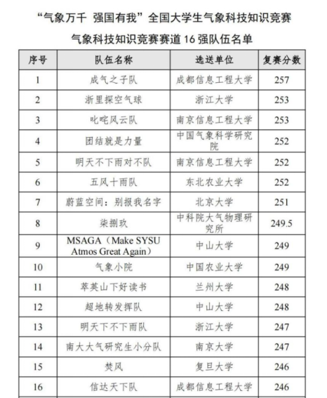 本次比赛设气象科技知识竞赛、气象文化创意赛两个赛道。气象科技知识竞赛赛道内容广泛,特别加入了党的十八大以来我国气象科技成就的相关题目,让相关专业师生更了解气象科技发展需求。来自36所高校和科研院所的76支队伍的230余名选手参加了气象科技知识竞赛,12所高校和科研院所参加了文化创意赛。经过初赛、复赛以及决赛第一轮淘汰赛的激烈角逐,经过一路过关斩将和加赛,最终我院“五风十雨”队伍获得全国三等奖。