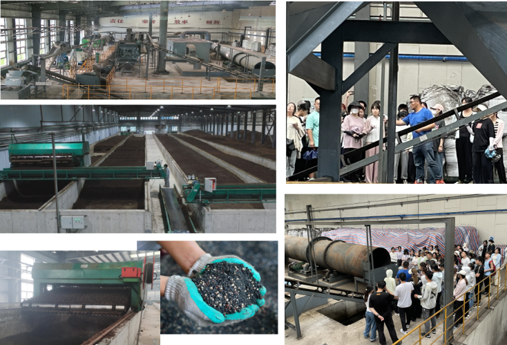 在带队教师,博能环保技术人员李传宝老师的带领下,来到了有机肥生产单元,就沼渣如何蜕变为有机肥展开实践教学。学生们先后进入沼渣发酵、粉碎筛分、造粒烘干、称重打包以及成品有机肥销售环节,切实感受通过生物技术对农业废弃物高值化利用,形成资源高效和循环利用的现代农业碳减排模式,助力国家“双碳目标”的达成。