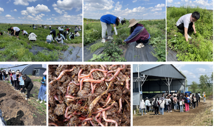 学生在此次实习中,参与蚯蚓生物高效处理粪污及秸秆等农业废弃物产业生产过程,切实感受农业产业循环链的拓展,包括高值化蚯蚓粪生物有机肥产品开发、利用蚯蚓动物蛋白进行家禽生态养殖、有机果蔬种植等。