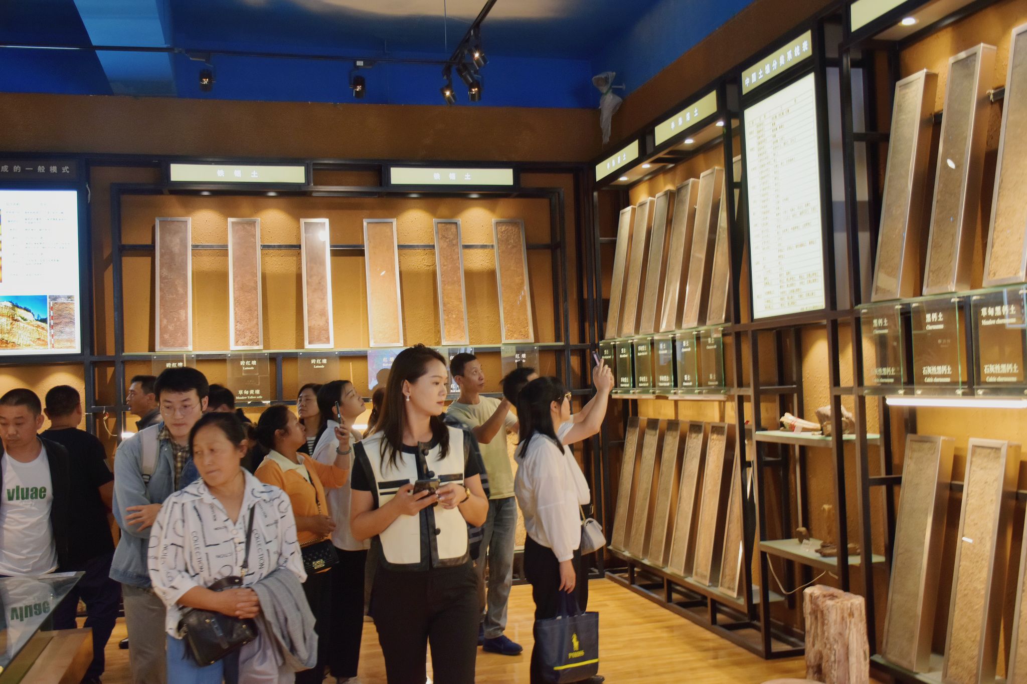 新生从各地携带的土壤瓶挂满展架