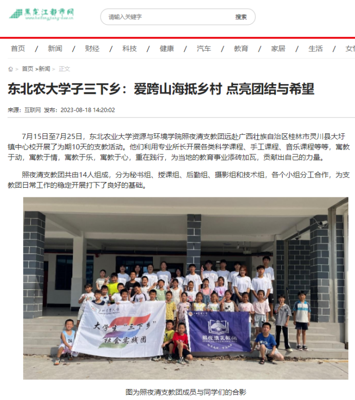 “照夜清”社会实践团被中华青年网、黑龙江都市网等多家媒体转载报道