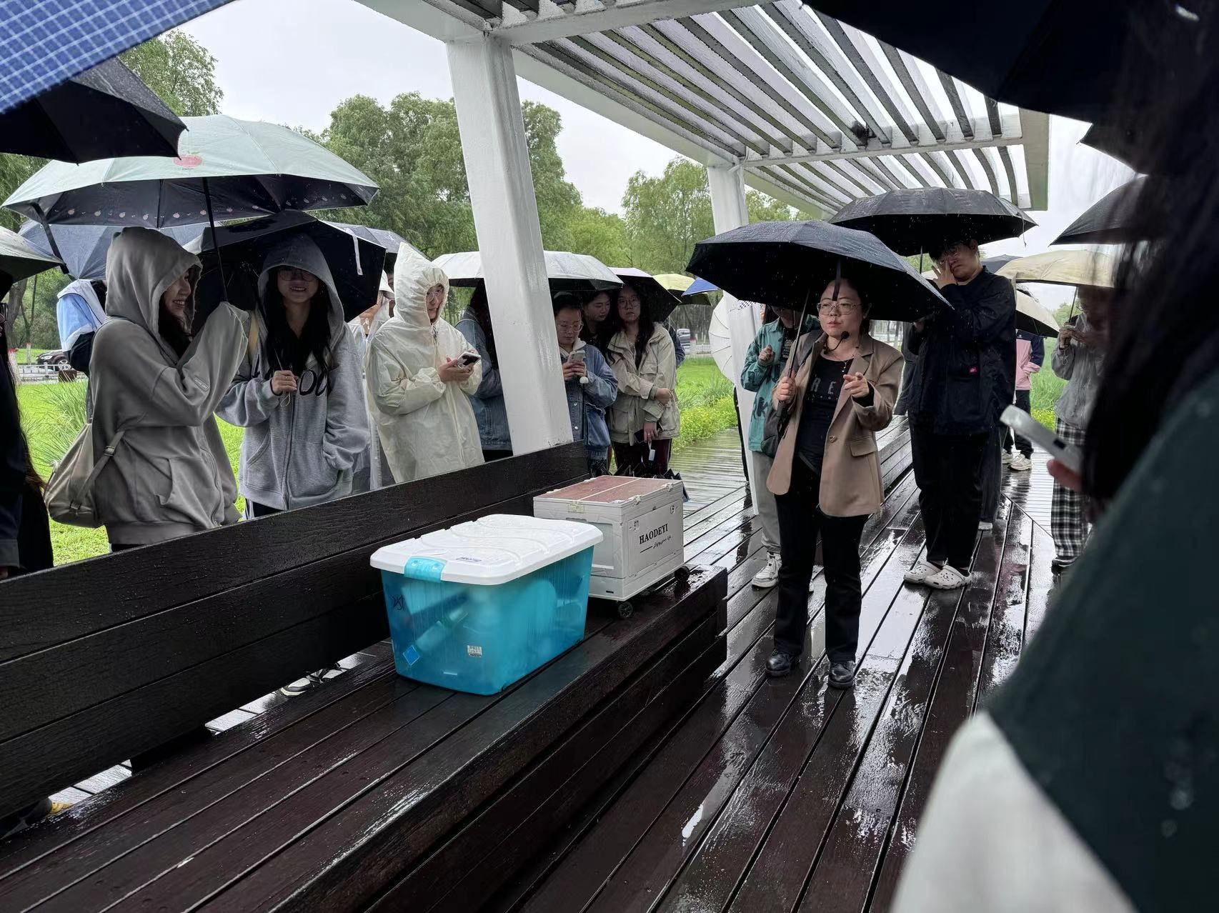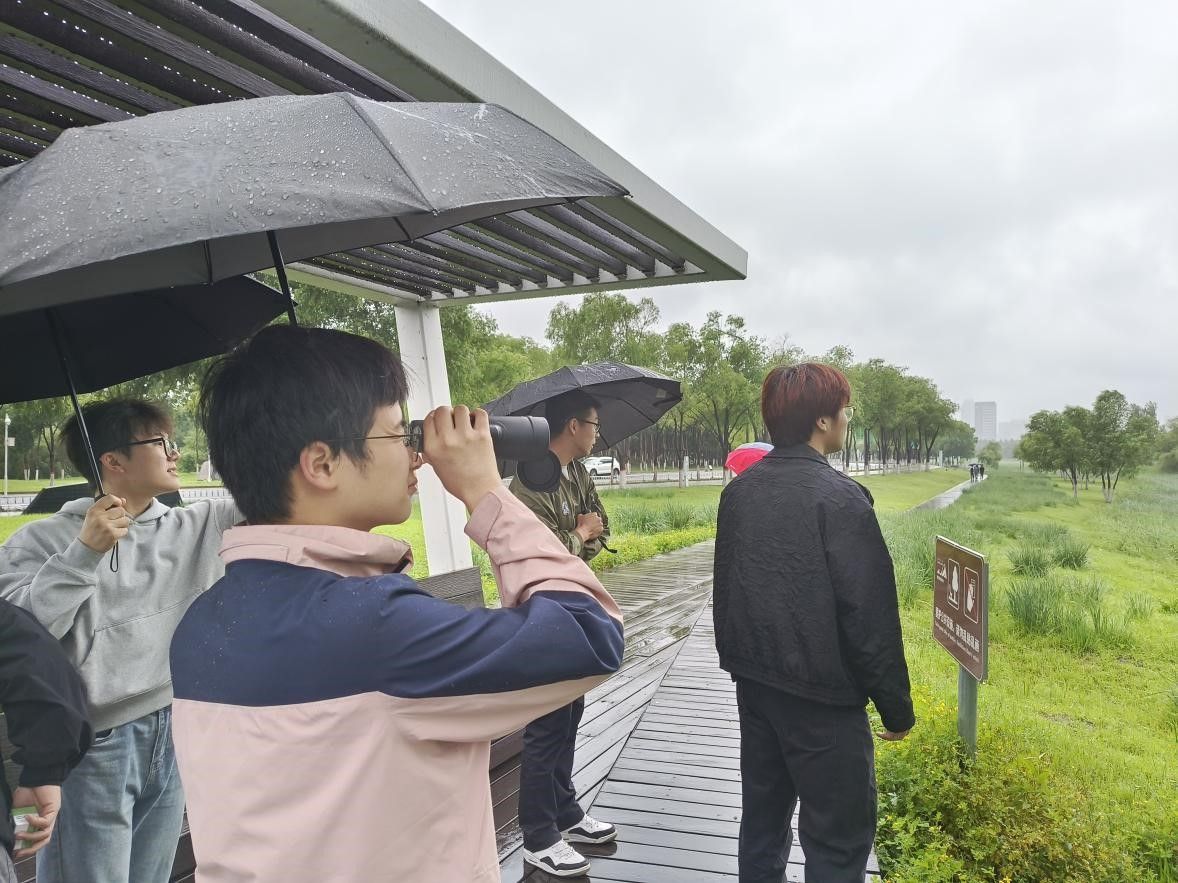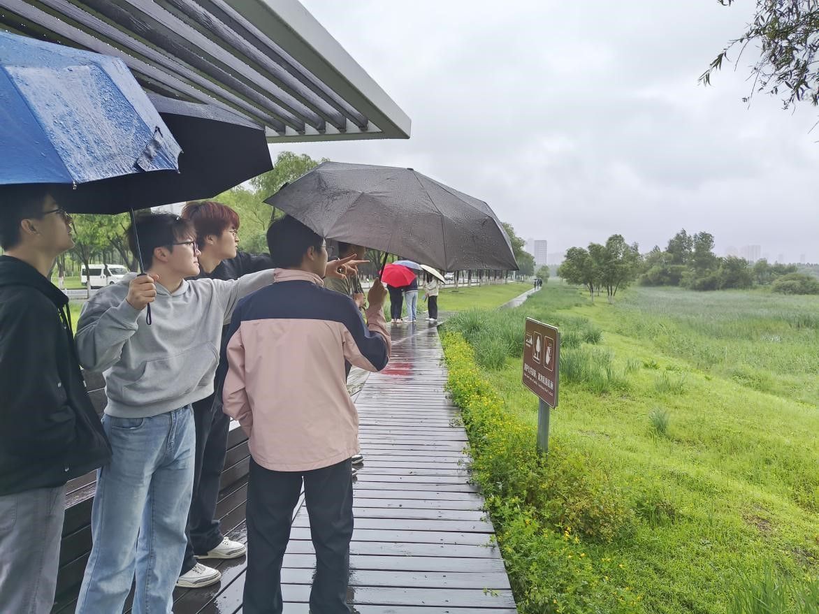 为了增强对湿地的认识和保护意识,这次实习张迪老师带领我们参观了江北大剧院湿地和群力湿地公园。一到湿地 ,我就被眼前的景象所吸引。和城市中林立的高楼大厦不同,湿地的开阔和植物的繁茂也给我们带来极大的视觉冲击, 令人流连忘返。在张迪老师悉心讲解下,我们了解使用鸟类观察望远镜,学习如何采集水样,如何快速测定土壤成分的仪器使用,如何测定水质等,最终指标测试组、植被调查组、动物调查组、调查范围确定组、水样采集组利用各种仪器都完美地完成了调查任务。