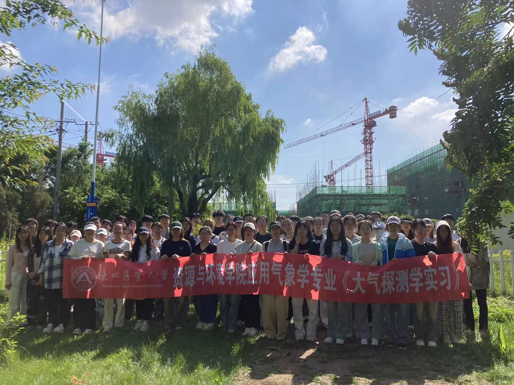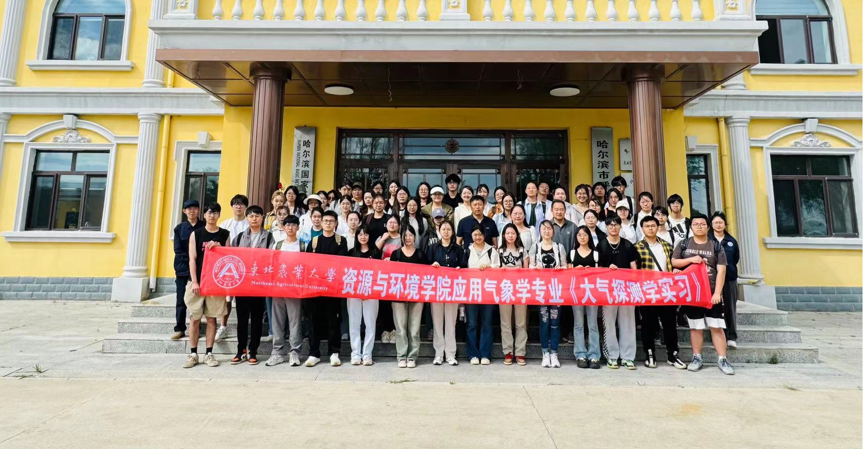 22级全体应用气象学学生和呼兰区气象局领导及实习指导老师合影