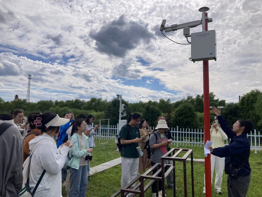 2024年6月17日,060net永利应用气象学专业2022级57名学生在张老师和宋老师的带领下,赴哈尔滨市呼兰区气象局进行了大气探测学实习,并且圆满完成任务。本次的实习内容包括对气象局基本站地面观测场中各仪器设备的学习、地面观测软件发报演练、高空探空雷达构造学习和探空资料接收软件学习。