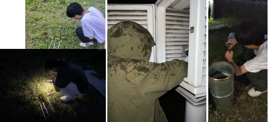 从气象局返回学校后第二天起,同学们又在校园北区气象站完成5天(6月18-22日)的地面观测实习内容。校内地面观测实习分组进行,每天完成6个时间段内的观测任务,主要包括百叶箱内干湿球温度表和最高最低温度表、风向风速、土壤温度、降水量、蒸发量、太阳总辐射、云量、云种、能见度等内容。并通过观测数据进行整理分析、绘图完成实习报告的撰写。