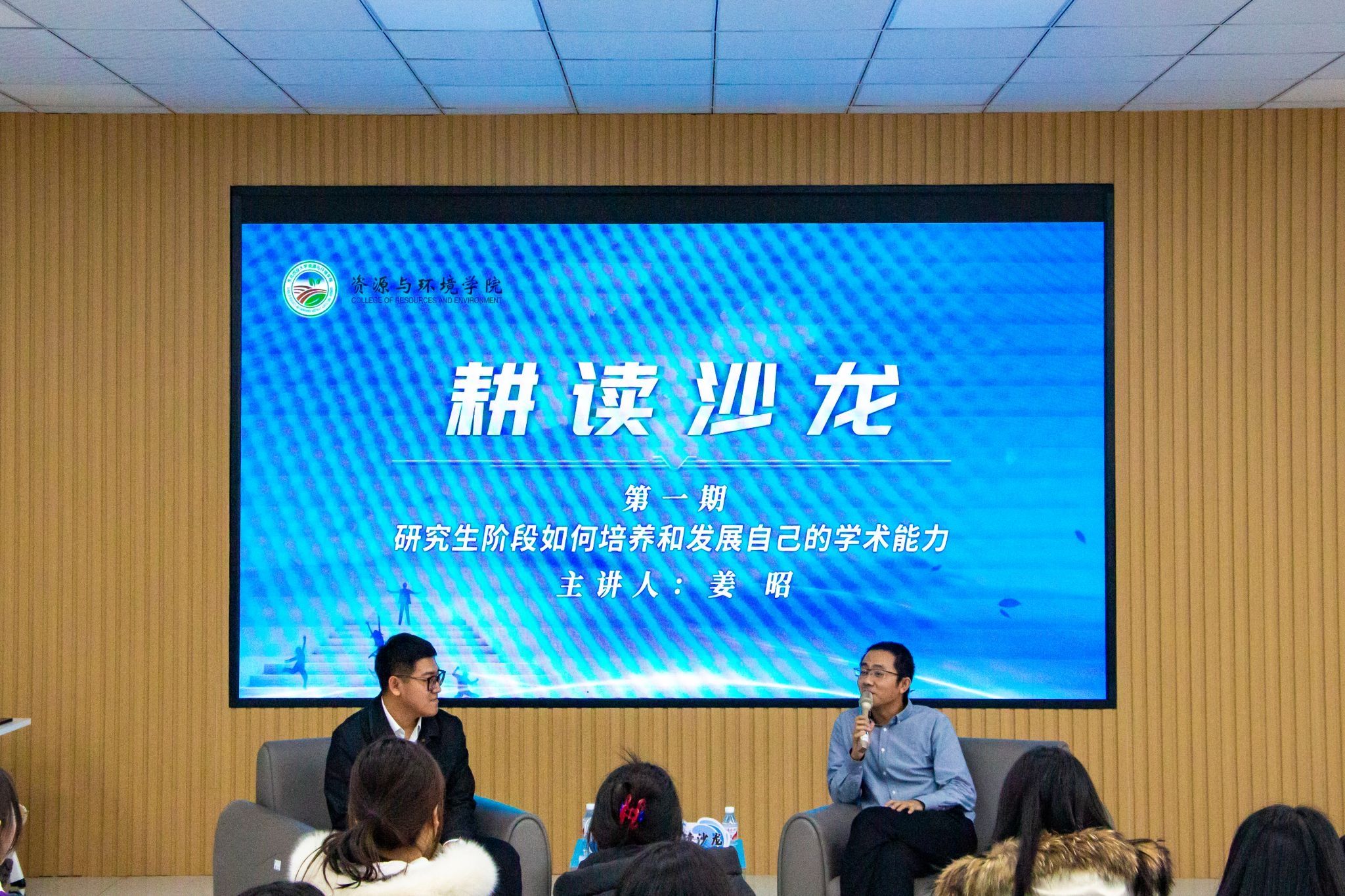 启动仪式后,姜昭以“研究生阶段如何培养和发展自己的学术能力”为题,与大家进行分享交流。姜昭就如何平衡科研学习与工作、如何提升科研能力等方面与学生进行了深入交流,并结合自身求学和职业生涯经历就如何高效管理时间、保持持续的学习热情以及面对学术挫折时的心理调适等方面给出了实用建议。他鼓励参会研究生要积极思考、勇于创新,克服困难,做潜心学术,永葆热情的科研人。在耕读沙龙最后阶段,姜昭与参会学生进行了互动,耐心细致地回答了学生提出的问题。