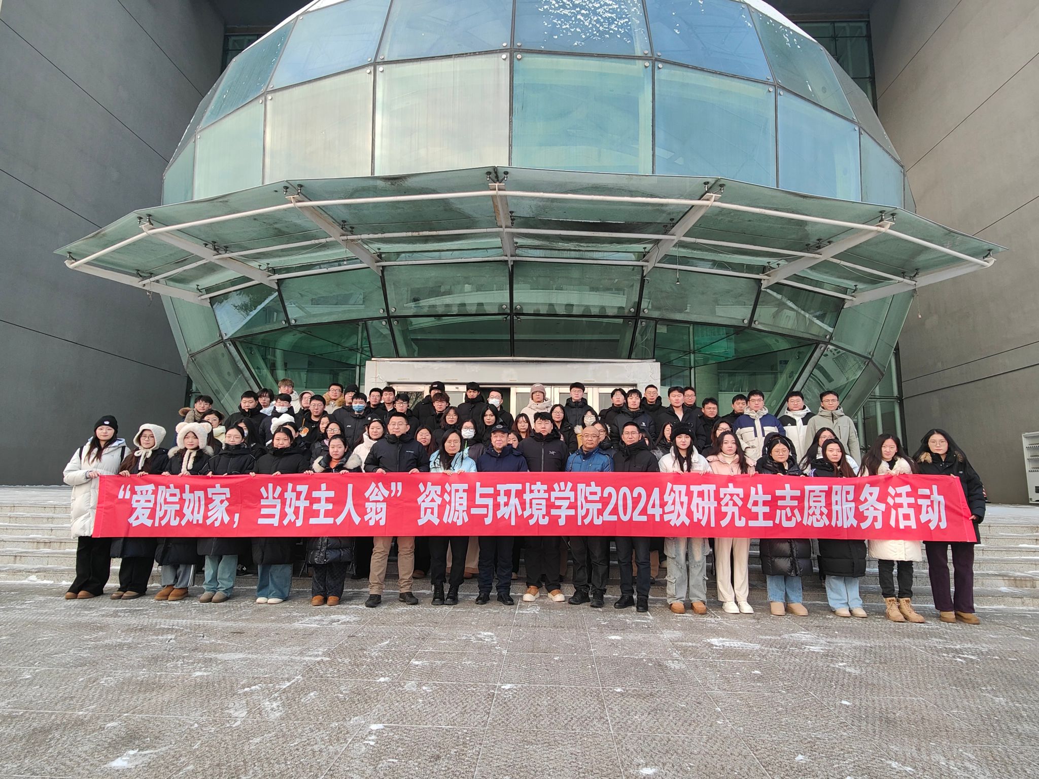 11月6日,学院组织70余名2024级研究生参观校史馆,助力学生了解学校发展历史,领会学校厚重的文化底蕴,进一步增强对学校的认同感、归属感和自豪感。为培养爱校荣校意识,激发学生当好主人翁、建功新时代的热情,1月9日,学院组织开展了“爱院如家,当好主人翁”2024级研究生志愿服务活动。全体研究生清扫了研究生楼门前积雪,保障广大师生出行安全。通过志愿服务,增强学生团队意识、社会责任感和服务意识,也营造了良好学习生活环境。