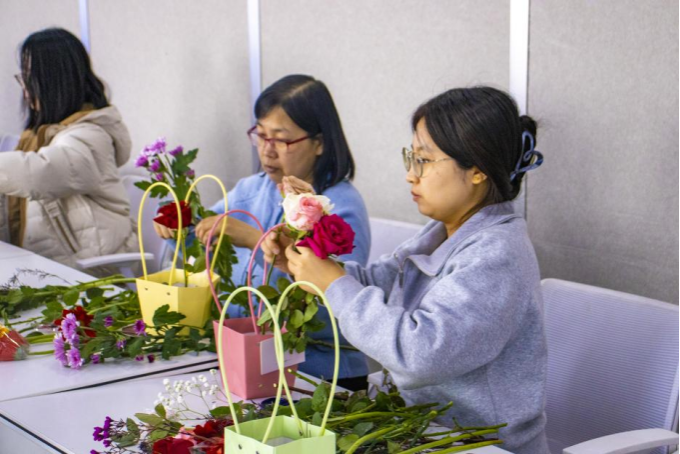 在场教师表示此次活动不仅是工作闲暇之余的身心调节,更是体悟花卉中的美学内涵,感受自然之美的过程,于自然与艺术的碰撞当中,寻觅一份独属于自身的惬意时光,以巧思和慧智送上一份美好的节日礼物。