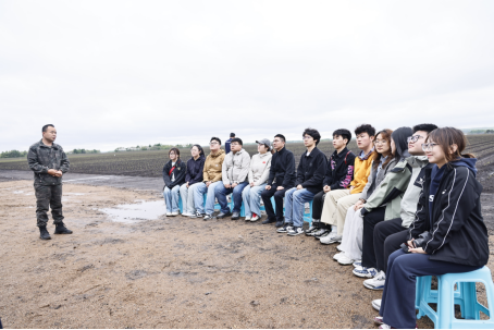 5月13日,学院党委副书记袁洪波、辅导员陈帅、申沛鑫组织学生赴绥化市庆安县柳河农场开展耕读教育实践活动。师生深入标准化示范田和室内种植示范区,直观感受智能化农机设备的标准化管理体系、土壤肥力实时监测与变量施肥的技术应用场景和“羊肚菌、彩椒菌蔬轮作”种植新模式,将专业课堂延伸至农耕一线,直观感受产业升级中的劳动新形态,拓宽劳动认知维度。本次实践活动既是一次现代农业科技的现场教学,更是一堂沉浸式劳动思政课。