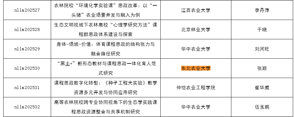 为了促进联盟高校间课程思政教学研究与交流,根据《高等农林院校课程思政联盟关于2025年教学改革研究项目申报工作的通知》要求,通过各高校教师自主申报、高校遴选推荐、专家评审,拟立项72项教学改革研究项目,其中,我院张颖教授“‘黑土+’新形态教材与课程思政一体化育人范式研究”获批高等农林院校课程思政联盟2025年教学改革研究项目。