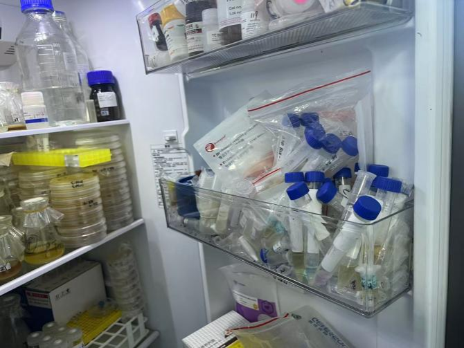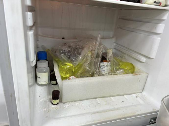 1、冰箱内实验物品摆放混乱。 2、插排置于地上、未离地30cm以上。 3、违规存放易制爆化学品-重铬酸钾、2,4-二硝基酚。 4、违规存放剧毒化学品-氯化汞。 5、药品柜未配置MSDS。 6、药品柜内存放大量无标签试剂。 |