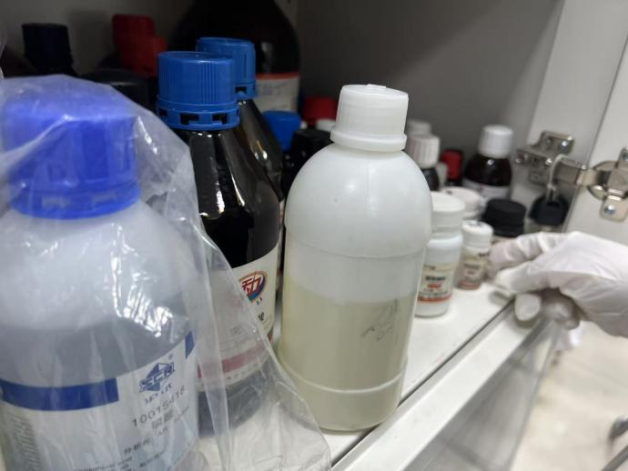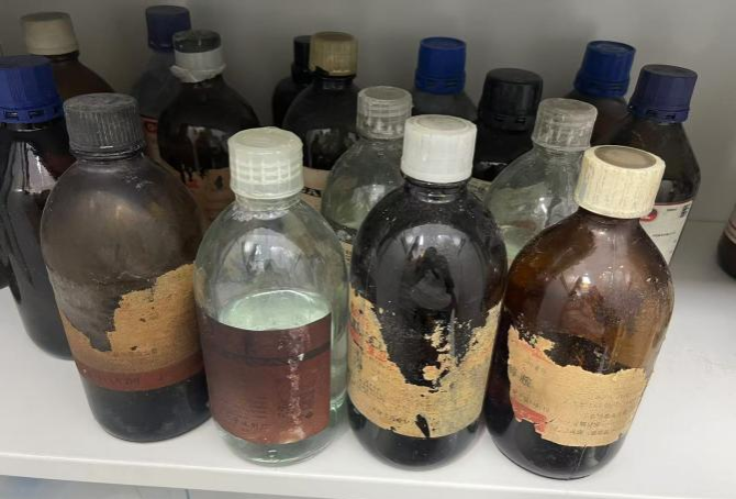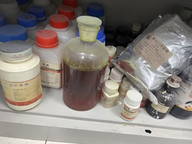 1、药品柜内存放无标签试剂、自配试剂未及时处理(张娟组)。 2、药品柜内存放无标签试剂(邵慧组)。 3、违规存放易制爆化学品-硝酸钠、试剂标签破损,无法辨认化学品名称(姜佰文组)。 4、实验室卫生混乱。 |