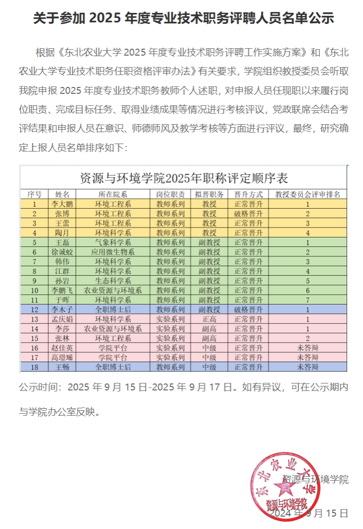 关于参加2025年度专业技术职务评聘人员名单公示