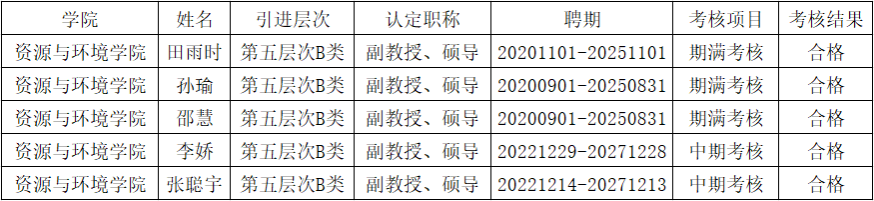 根据学校《关于开展优秀引进人才聘期考核工作的通知》要求,2025年12月22日学院组织教授委员会对我院5位优秀引进人才教师进行中期/期满考核,根据对相关人员情况、考核材料进行审核,各位教授委员会成员对考核人员进行投票打分,五位人才的考核结果均为合格。2025年12月24日党政联席会各位成员对考核结果进行表决,表决结果均为同意。现对考核结果进行公示,公示日期为2025年12月24日-2025年12月26日。