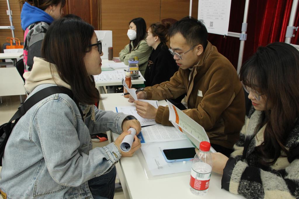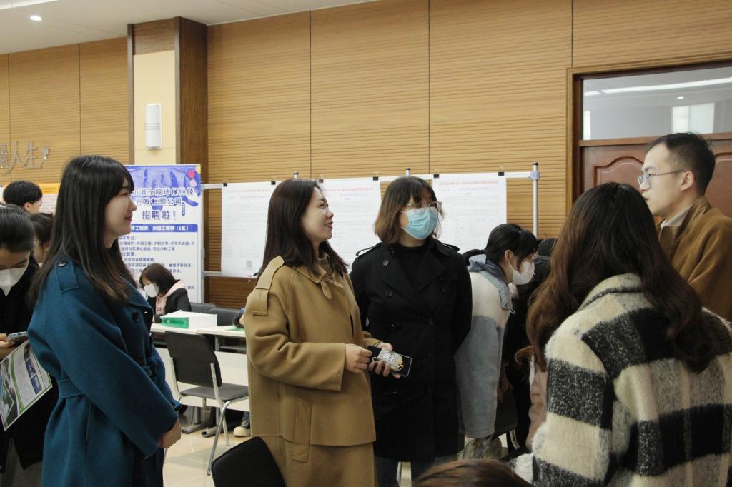 为进一步服务全体毕业生,会前,学院整合资源、同向发力,通过校友宣传、实践基地、拓岗企业等方式为学生争取百余个优质岗位。学院辅导员依托“就业日志”收集了意向毕业生简历,提前动员、充分做好量身指导。招聘会工作组精心设计了宣传海报、参会指南材料袋等提前发放给学生和用人企业,此外会场布置了洽谈区、面试区,提高了双选的针对性和高效性。