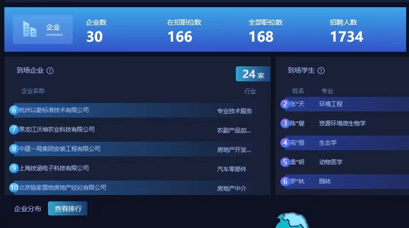 本次农业类专场招聘会采用“云端”“线下”双引擎模式同时进行,共吸引来自全国7个省(市区)的45家用人单位参加,其中500强企业及其子公司和国企占比1/5,并且涵盖龙江环保集团股份有限公司、黑龙江良大投资控股有限公司、史丹利农业集团股份有限公司、北大荒垦丰种业股份有限公司等我省农业类领军企业。学院在校300余名毕业生及部分2024届学生参会,用人单位共收取简历500余份,现场意向签约33人。