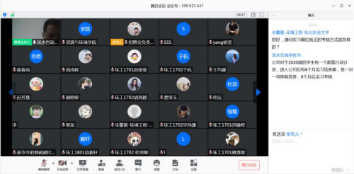 疫情期间,学院鼓励学生积极就业,充分利用网络载体资源做好就业服务工作。4月17日,学院依托腾讯会议召开“资环云招聘”双选会,吸引了来自北京、天津、山东、深圳等省份包括产业基础夯实的中国水产科学研究院黑龙江水产研究所、中建一局集团、中电信嘉环保科技、山东鲁抗医药股份有限公司等十余家优质企业参会。招聘会结合学院学科专业特色,对毕业生吸引力强,全场参与达400多人次。学院同时组织2021届毕业生临场观摩,让低年级学生提前充分了解实习环境和用人单位招聘需求,本次云招聘取得了线上双选的良好效果是推进学院疫情防控期间精准就业服务的一次有效尝试。