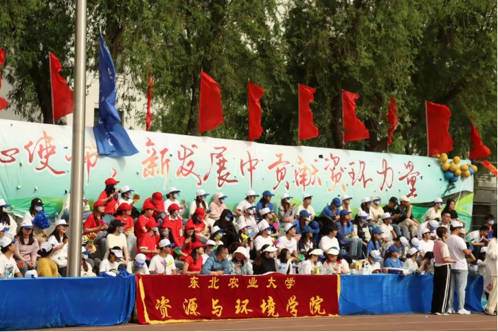 激昂的音乐奏起,蓄势待发的各个学院前导队方阵,踏着整齐的步伐,依次入场,接受检阅。他们意气风发,斗志昂扬;他们昂首迈步,声震云霄。各个学院用各具特色的方式,展现着学院独特的文化底蕴。资环学院的全体师生和运动员们践行着手捧初心,肩负使命,耕读传家,兴农强农的不断追求,在黑土地上践履初心使命,于新发展中贡献资环力量。