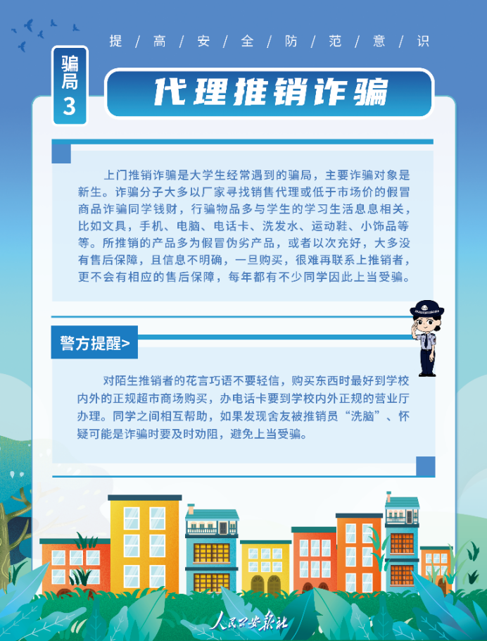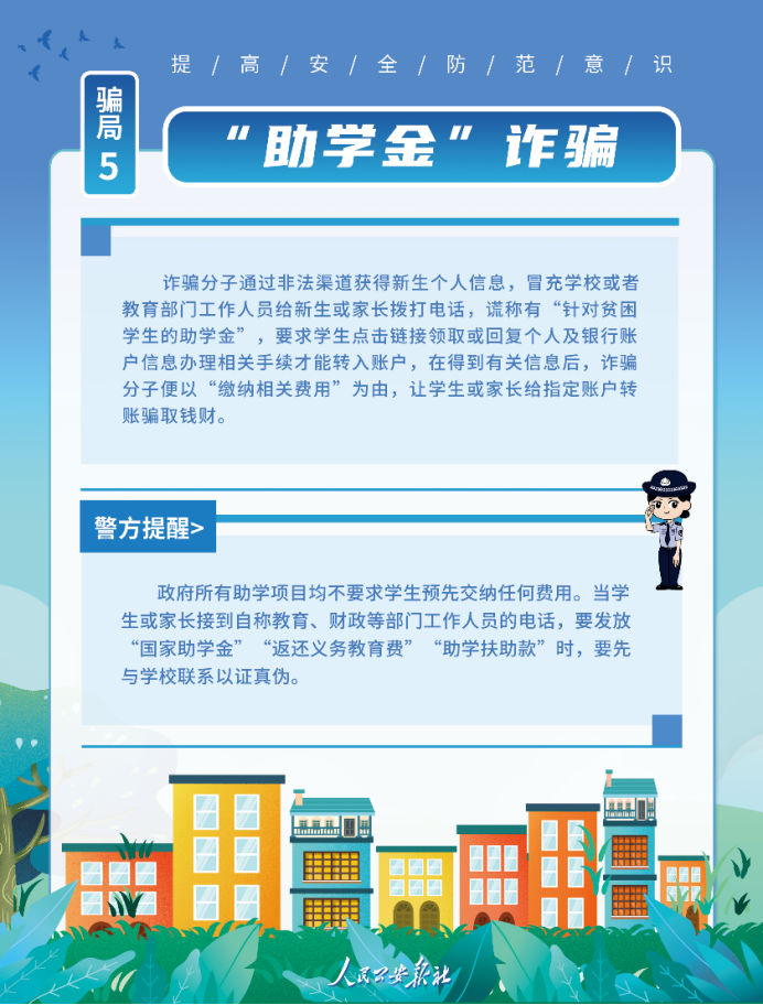 以往案件表明,不法分子利用新生的社会经验不足等弱点,假扮学校工作人员、老师、同学、校友、同乡等在新生中行骗。提醒广大新生,学校在新生报到当天宿舍内不会收取任何现金,不组织各类捐款,但凡在电话里以学校或老师个人名义要求寄钱、寄物的,或谎称学生出现事故要求家长汇款转账的,一定是骗子,千万不要轻信。