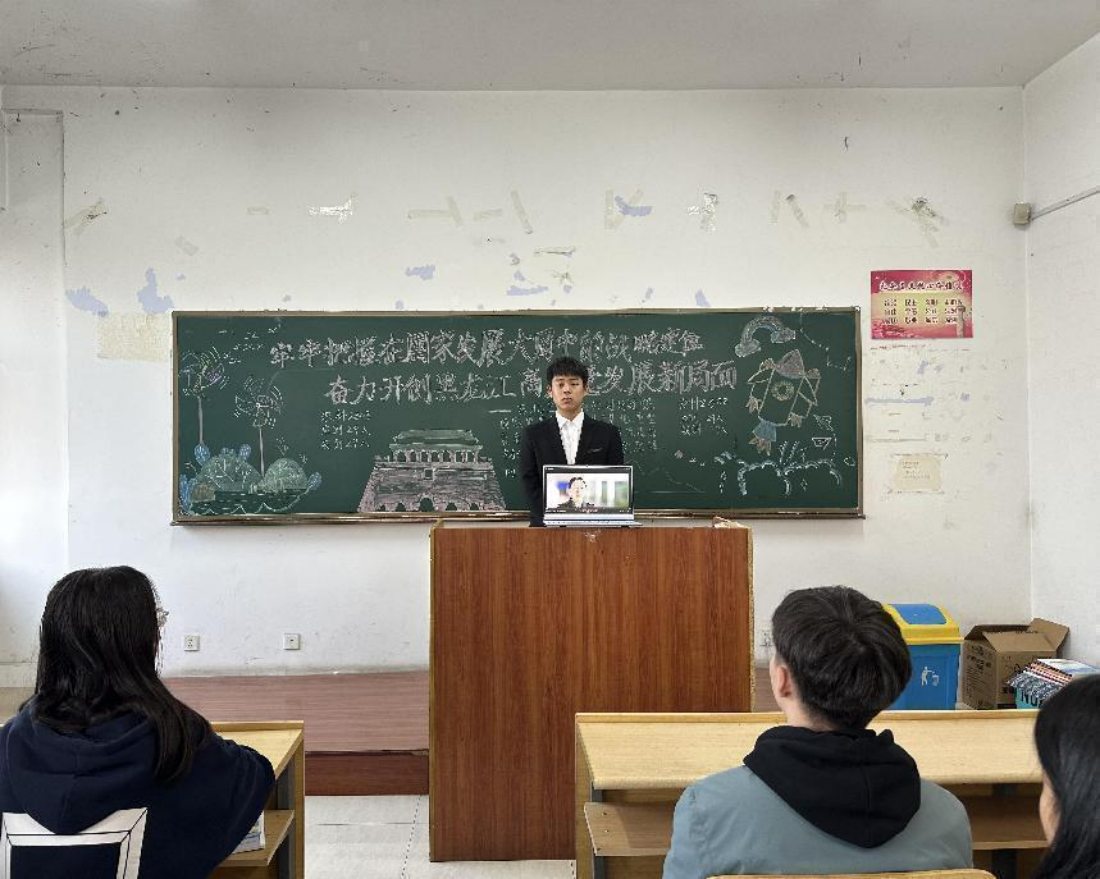 生态2301班和生态2302班主持人准备完全且细致,通过给同学们播放相关视频并阅读相关材料,指引同学们要以产业升级为方向,以科技创新为关键,以人才资源为根本,在求“新”求"质"中抓住新机遇、开创新局面,为高质量发展注入澎湃动能与不竭动力。