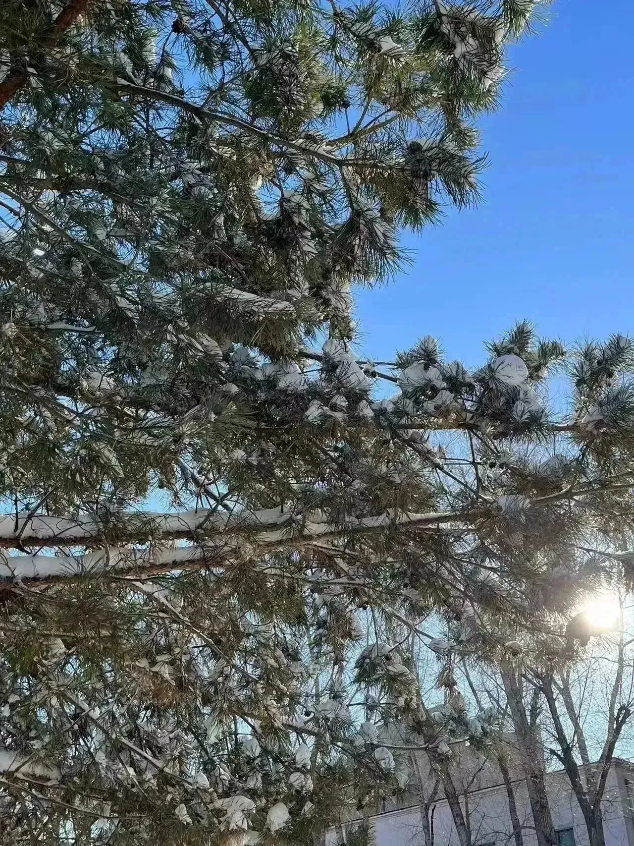 云日辉映,一片雪色。苍松掬雪,青松化为琼枝;新雪初霁,亮银流转枝头。簌簌落下的雪花,在大地铺写初冬的来信。