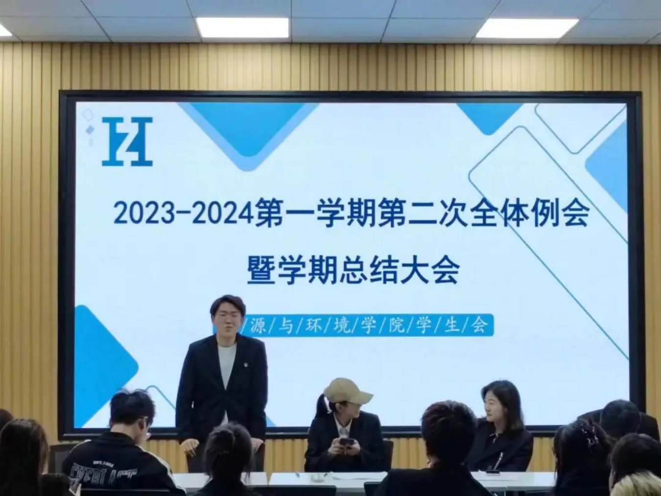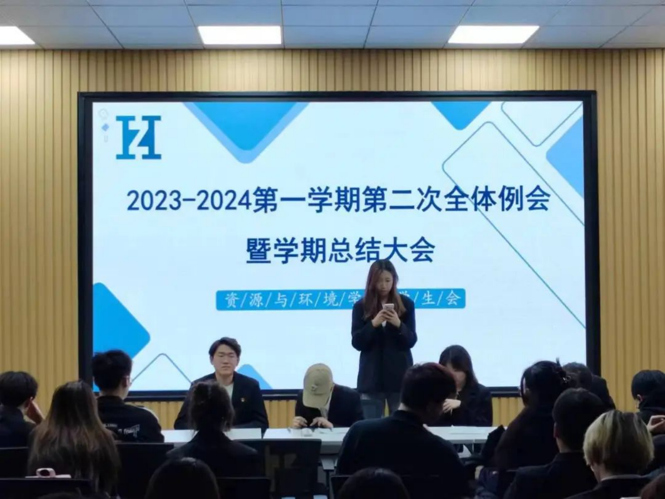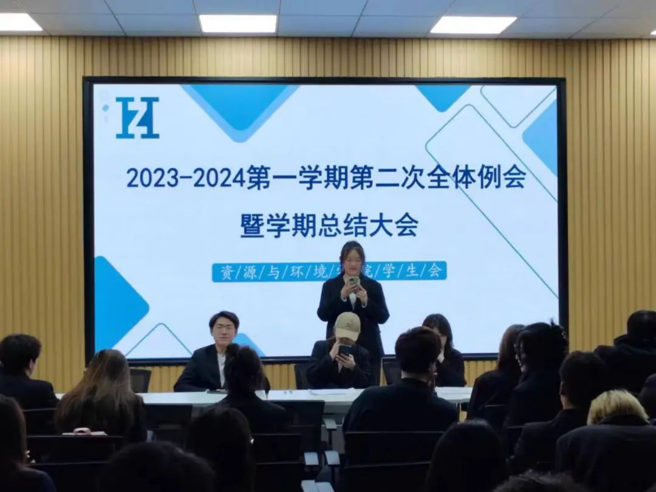 刘爽主席在例会中说:随着学期之声的渐远,我们学生会已经完成了本学期的工作。在此我们对本学期的工作进行如下总结。首先,我们成功的组织了多项活动,这些活动得到了广大师生的热烈响应和积极参与,不仅丰富了同学们的课余生活,也促进了同学们之间的交流和友谊。然而在工作的过程中,我们也有不足之处,一些推送的制作模板选择的不恰当,照片的拍摄等方面都还有进步的空间。