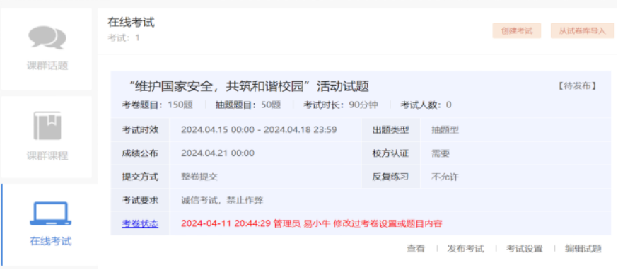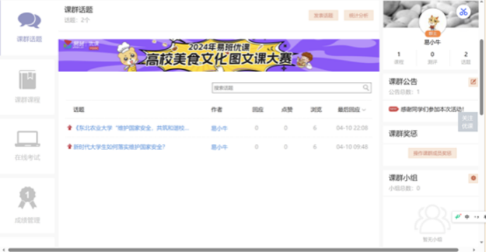 参赛人员加入本次活动的课群(邀请码:EWMN5APL ),按照课群话题讨论区的《60net永乐高“维护国家安全,共筑和谐校园”活动课群学习内容及要求》进行学习,学习内容包括课群课程和在线考试。其内容包含课群话题,课群课程和在线考试三个模块学习要求以及最终总成绩评分标准。倘若对课群内容有所疑惑的地方可以在评论区留下自己的帖子,易班的工作人员不久之后便可以为你解答问题。接下来就让我们一起详细地看看我们的学习内容吧!