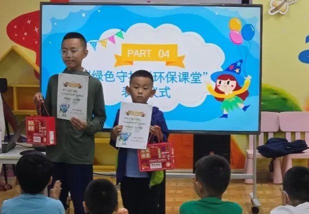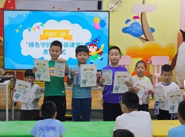 在课堂中,环保小卫士们认真学习、积极参与,用实际行动传播环保理念。小小身躯蕴含大能量!特对表现优异的小朋友授予“小小绿色守护者”荣誉称号,期待他们继续闪耀绿色光芒!