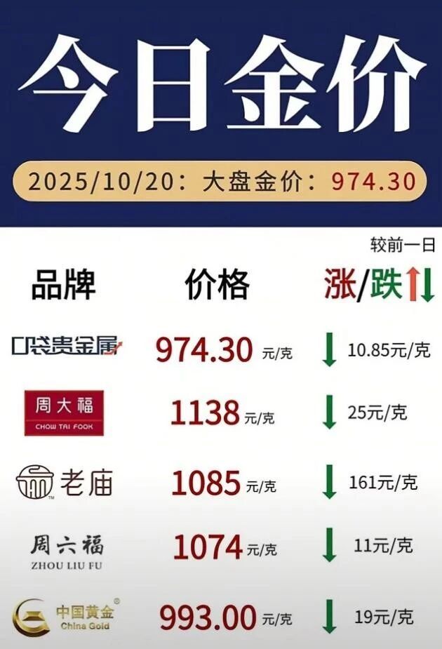 2025年10月21日,国际黄金市场单日暴跌超6%,创2013年以来最大跌幅。受此影响,国际品牌连锁金店也调整了今日金饰金条的挂牌价格。其中亚一金店、老庙黄金金饰报价1211/克,较前一日下跌83/克;老凤祥报1229元/克,较前一日下跌61/克。