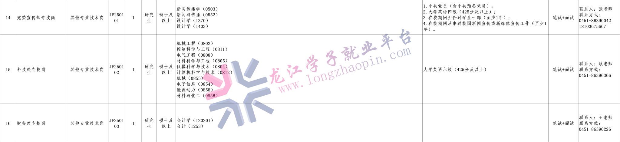 本次计划招聘工作人员19名。具体招聘岗位、人数、条件等详见《哈尔滨理工大学2025年公开招聘工作人员岗位计划表》(附件1,以下简称《计划表》)。