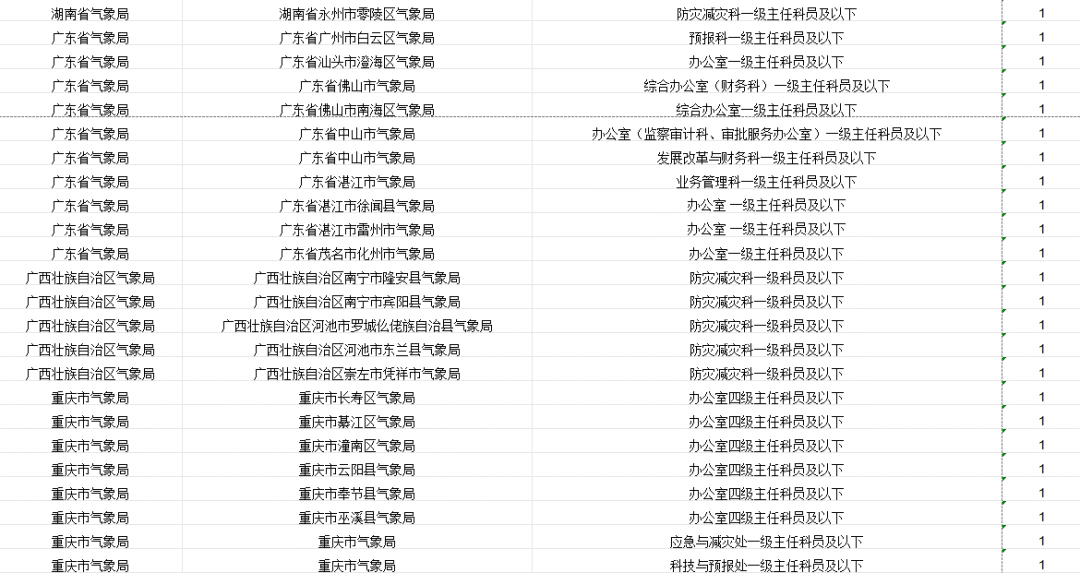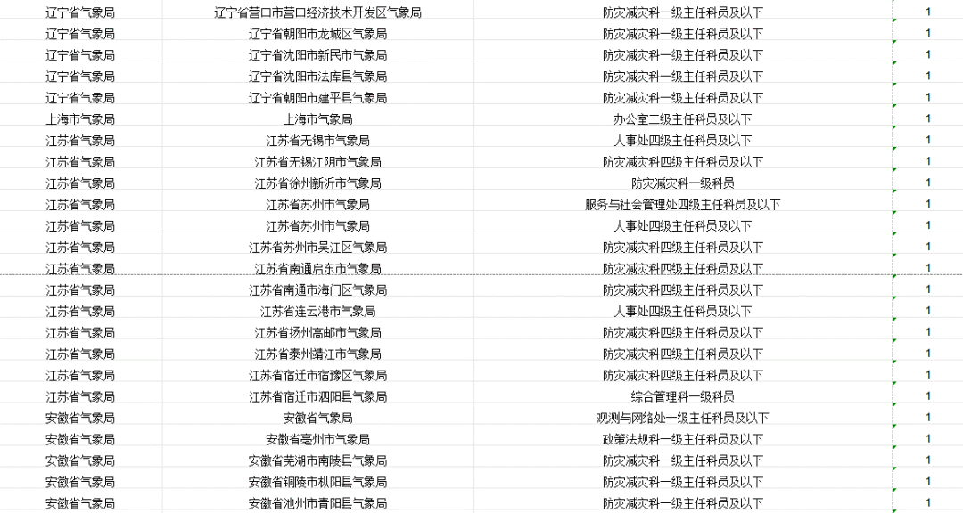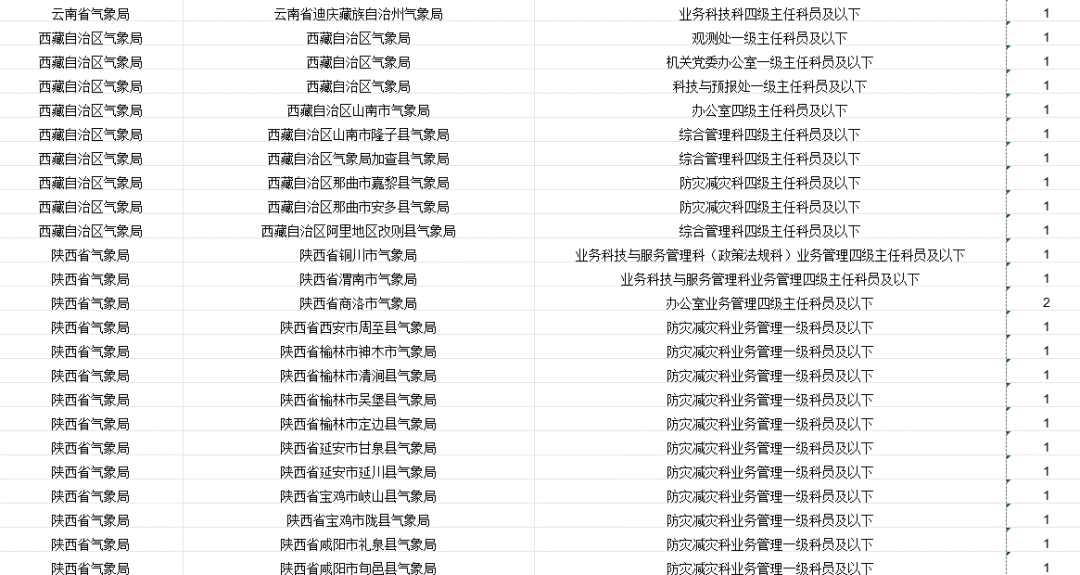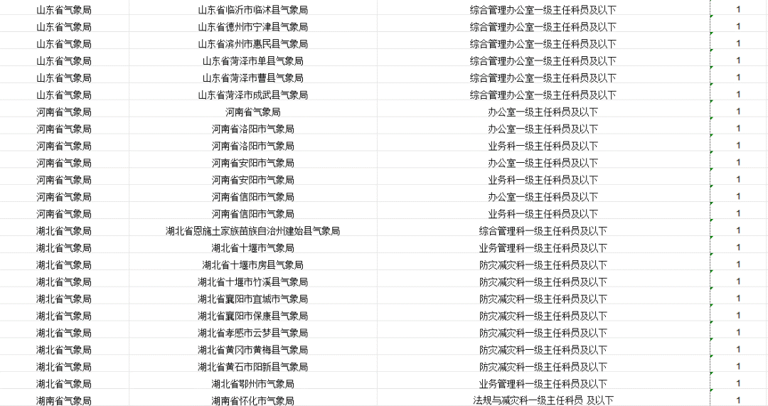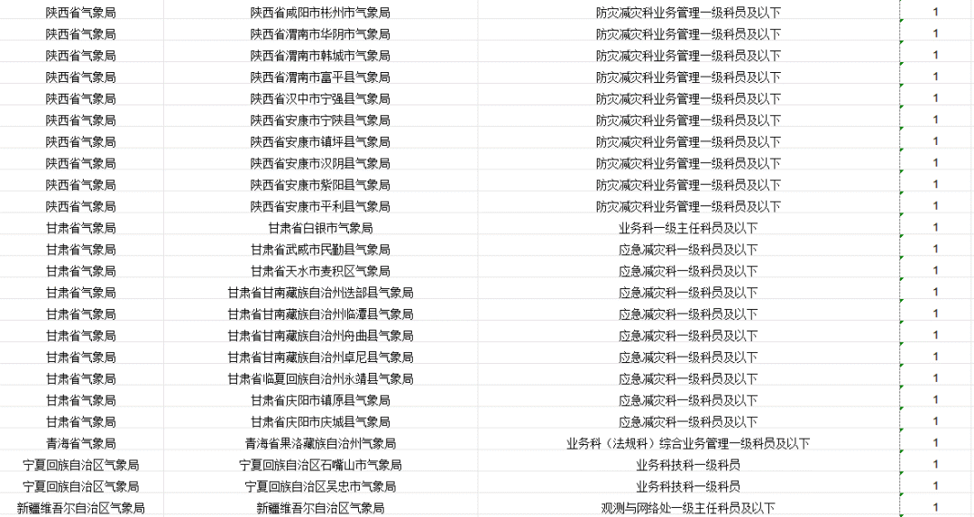 中国气象局及其直属机构计划招录265人。其中,中国气象局机关招录4人,中国气象局系统参照公务员法管理事业单位招录261人。